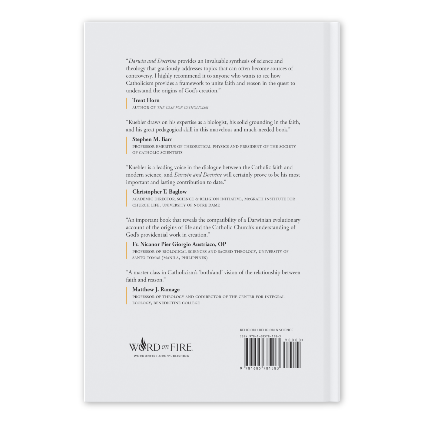 “Darwin and Doctrine provides an invaluable synthesis of science and theology that graciously addresses topics that can often become sources of controversy. I highly recommend it to anyone who wants to see how Catholicism provides a framework to unite faith and reason in the quest to understand the origins of God's creation.”